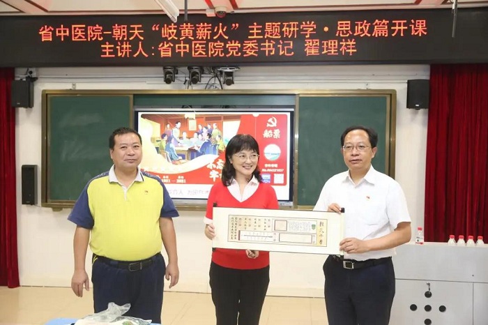 9月24日,为高标准促进广东省中医院(广州中医药大学第二附属医院)第三季“岐黄薪火”中医药文化进校园项目开好局、起好步、谋好篇,医院党委书记翟理祥前往朝天小学为学校全体教师开讲主题为“在新征程上继承发扬好伟大建党精神”的思政课,朝天小学校长孔虹、医院团委书记何仲奎及全体在校教师参加学习,清远市清城区大观小学、清远市教师进修学校附属实验小学、吴川市兰石镇庄艮小学的教师在线上参加学习,朝天小学党支部书记、少工委主任张绍泉主持学习。